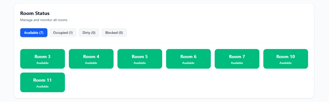 Keep track of available, occupied, dirty, and blocked rooms
