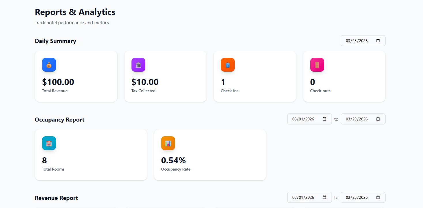 Revenue Reports showing various revenue numbers for a given time range