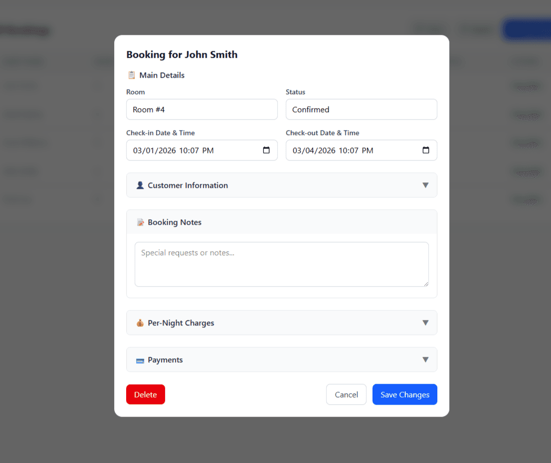 Filter bookings based on customer name, dates, room number, and more
